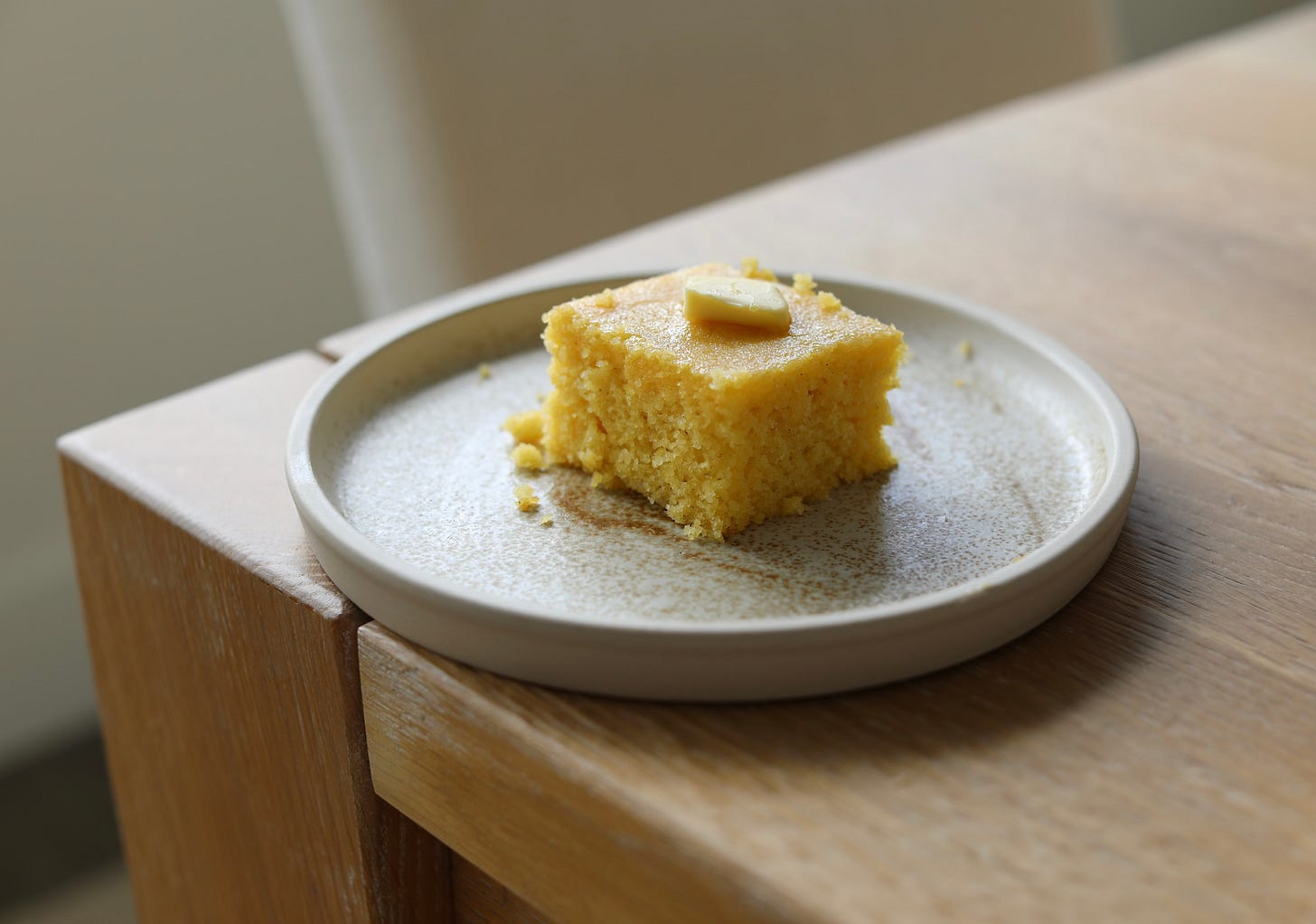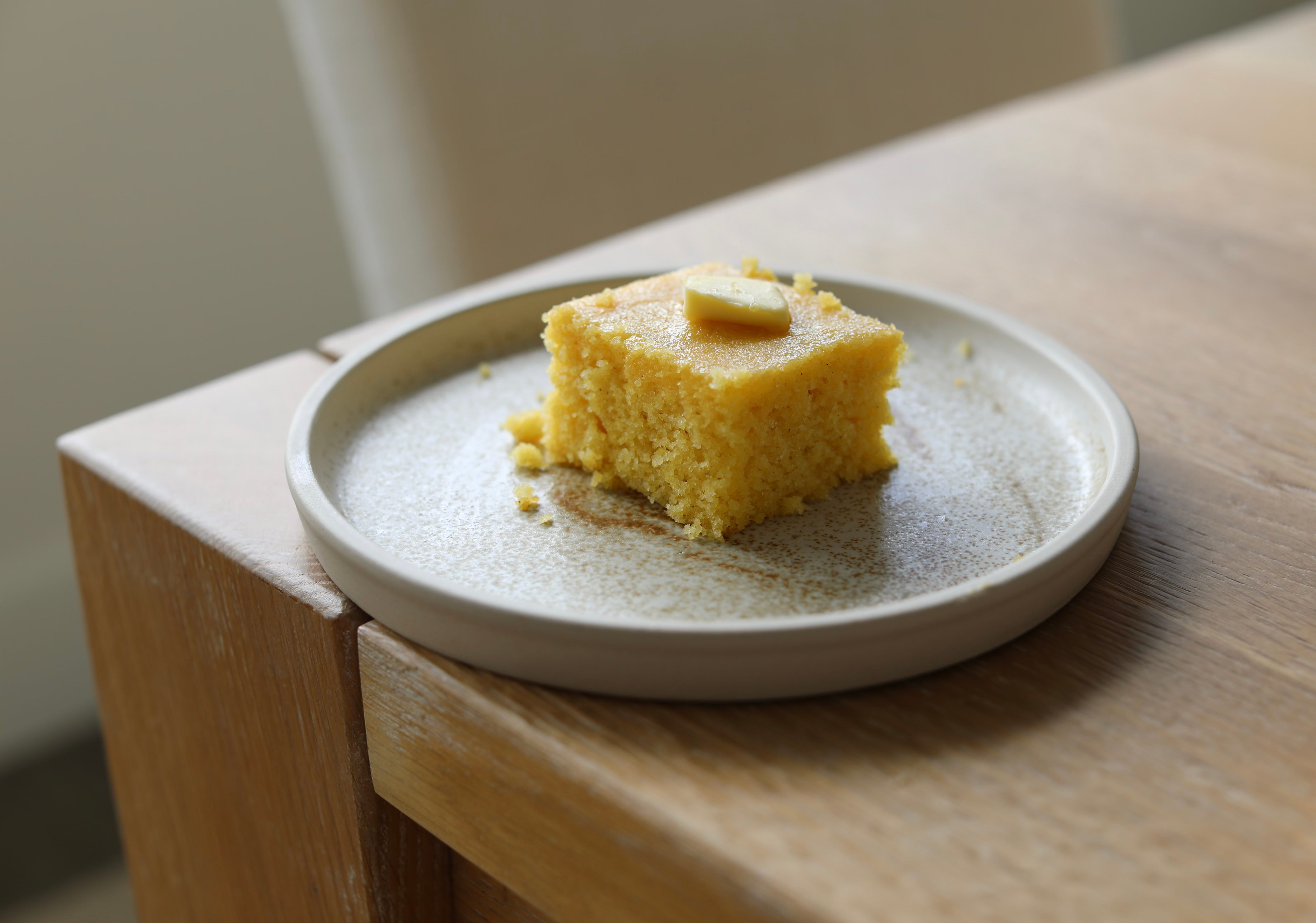 El cornbread es un pan tradicional del sur de Estados Unidos hecho con harina de maíz (cornmeal). Aunque se llama “pan”, en realidad su textura y sabor recuerdan más a un bizcocho: es suave, ligeramente dulce y con ese toque rústico y reconfortante del maíz.